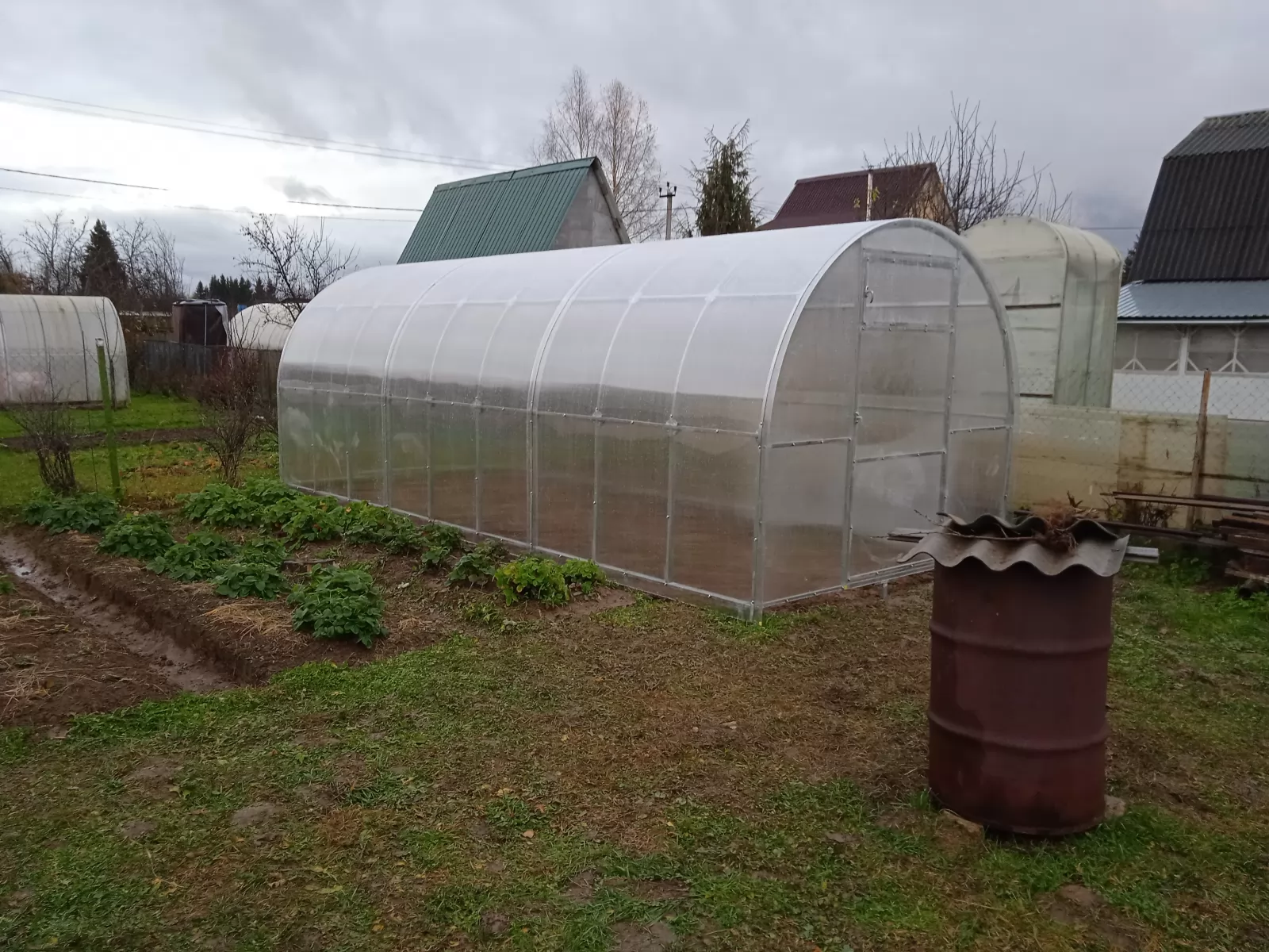«Хотел купить весной, но увидел акции по осени и не пожалел. Ночи уже прохладные, но установка прошла спокойно. Установили за день, всё ровно и надёжно. Уже начал заносить почву и готовить грядки. Каркас крепкий, видно, что надолго. Очень рад, что подготовился заранее — теперь без весенней суеты!»